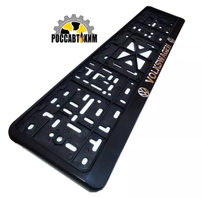 Рамка для номера с защелкой с надписью (рельефная) 'VW' серебро