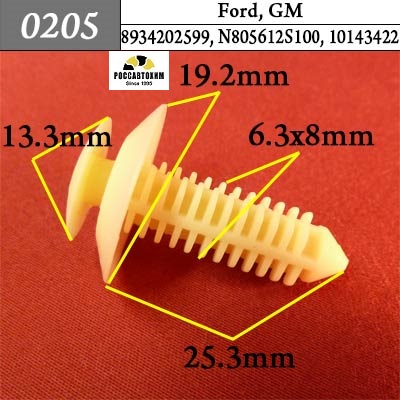 Автомобильный крепёж 0205 автокрепеж для Ford, GM c оригинальным кодом 8934202599, N805612S100, 10143422 используется на автомобилях Ford, GM для монтажа элементов автомобиля в следующих местах: капот, отделка (различная), уплотнители, фиксаторы, шумоизол. .Характеристики крепежа:OEM: 8934202599 Марка: Ford Модель: EscortOEM: 8934202599 Марка: Ford Модель: FiestaOEM: 8934202599 Марка: Ford Модель: FocusOEM: 8934202599 Марка: Ford Модель: GalaxyOEM: 8934202599 Марка: Ford Модель: MaverickOEM: 8934202599 Марка: Ford Модель: MustangOEM: 8934202599 Марка: Ford Модель: ScorpioOEM: 8934202599 Марка: Ford Модель: TaurusOEM: 8934202599 Марка: Ford Модель: Tourneo Connect