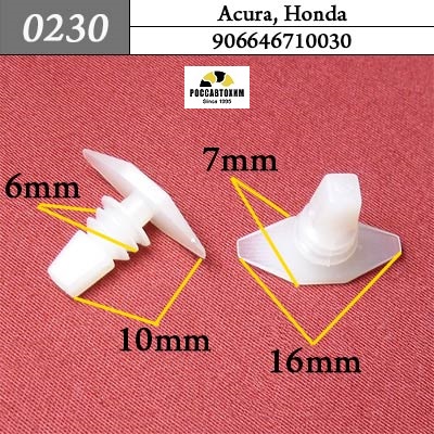 Автомобильный крепёж 0230 автокрепеж для Acura, Honda c оригинальным кодом 906646710030, 90664671003 используется на автомобилях Acura, Honda для монтажа элементов автомобиля в следующих местах: кузов, уплотнители, фиксаторы, шумоизол. .Характеристики крепежа:OEM: 90664671003. Марка: Acura. Модель: Разные. Место установки: Дверь. Элементы: Уплотнитель. Дополнительно: Крепление уплотнителя двериOEM: 90664671003. Марка: Acura. Модель: Разные. Место установки: Капот. Элементы: Уплотнитель. Дополнительно: Крепление уплотнителя капотаOEM: 90664671003. Марка: Honda. Модель: Accord, (1989 — 2016), Acty (1979 — 1986), Legend (1985 — 1996), NSX (1990 — 2005), Prelude (1987 — 1996). Место установки: Дверь. Элементы: Уплотнитель. Дополнительно: Крепление уплотнителя двериOEM: 90664671003. Марка: Honda. Модель: Accord, (1989 — 2016), Acty (1979 — 1986), Legend (1985 — 1996), NSX (1990 — 2005), Prelude (1987 — 1996). Место установки: Капот. Элементы: Уплотнитель. Дополнительно: Крепление уплотнителя капотаOEM: 90664671003. Марка: Land Rover. Модель: Range Rover. Место установки: Дверь. Элементы: Уплотнитель. Дополнительно: Крепление уплотнителя двериOEM: 90664671003. Марка: Land Rover. Модель: Range Rover. Место установки: Капот. Элементы: Уплотнитель. Дополнительно: Крепление уплотнителя капота