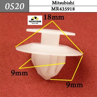 Автомобильный крепёж 0520 автокрепеж для Mitsubishi c оригинальным кодом MR435918, MN112024 используется на автомобилях Mitsubishi для монтажа элементов автомобиля в следующих местах: отделка (различная), пороги .Характеристики крепежа:OEM: MR435918. Марка: Mitsubishi. Модель: Chariot (1997 — 2003), Grandis (1997 — 2003). Место установки: Дверь. Элементы: УплотнительOEM: MR435918. Марка: Mitsubishi. Модель: Colt (2002 — 2018), Galant (1996 — 2006), Montero, Pajero (1996 — 2014), Space Runner (1999 — 2002), Space Wagon (1998 — 2004). Место установки: Порог. Элементы: МолдингOEM: MR435918. Марка: Mitsubishi. Модель: Nativa (2008 — 2018), Pajero Sport (2008 — 2018). Место установки: Багажник. Элементы: Молдинг. Дополнительно: Крепление молдинга на крышке багажникаOEM: MR435918. Марка: Mitsubishi. Модель: Colt (2003 — 2011). Место установки: Багажник. Элементы: Номерной знак. Дополнительно: Крепление облицовочной панели на крышке багажникаOEM: MR435918. Марка: Mitsubishi. Модель: Minicab (19
