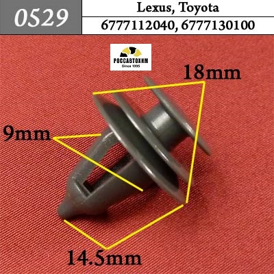 Автомобильный крепёж 0529 автокрепеж для Lexus, Toyota c оригинальным кодом 6777112040, 6777130100, 9046710166 используется на автомобилях Lexus, Toyota для монтажа элементов автомобиля в следующих местах: двери, отделка (различная) .Характеристики крепежа:OEM: 6777112040. Марка: Daihatsu. Модель: Разные. Место установки: Дверь. Элементы: Обшивка двериOEM: 6777112040. Марка: Lexus. Модель: LS400. Место установки: Дверь. Элементы: Обшивка двериOEM: 6777112040. Марка: Lexus. Модель: ES300 (1996 — 2001). Место установки: Салон. Элементы: Потолок. Дополнительно: Крепление обшивки потолкаOEM: 6777112040. Марка: Lexus. Модель: LX450 (1995 — 1998). Место установки: Салон. Элементы: Облицовка. Дополнительно: Крепление панелей обшивки салонаOEM: 6777112040. Марка: Toyota. Модель: Aurion, Carina (1988 — 1992), Chaser (1988 — 1992), Corolla (1987 — 1993), Corona, Cressida (1988 — 1993), Cresta (1988 — 1992), Crown (1987 — 1999), Land Cruiser (1990 — 1999), Land Cruiser Prado, Mark II (1988 — 1992),