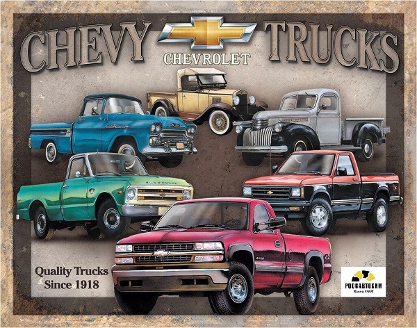 Chevy Truck TributeТрибьют для Chevy TruckАртикул: 1747UPC: 605279117475Толщина: 1,5мм Табличка оригинал выполнена из металла с покрытием, углы закруглены и имеют удобные отверстия для крепления, а загнутые края придают эффект объема.Табличка может использоваться как в помещении, так и на улице.Думаете, что купить друзьям в подарок для дома, дачи, гаража или бара? Предлагаем вам отличную идею для подарков, которые точно обрадуют тех, кому они достанутся!Производитель — Desperate Enterprises, USA