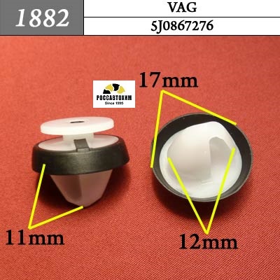 Автомобильный крепёж 1882 автокрепеж для Audi, Seat, Skoda, Volkswagen c оригинальным кодом 5J0867276 — используется на автомобилях Audi, Seat, Skoda, Volkswagen для монтажа элементов автомобиля в следующих местах: двери, отделка (различная) .Характеристики крепежа:OEM: 5J0867276. Марка: Audi. Модель: 100. Место установки: Дверь. Элементы: Обшивка двериOEM: 5J0867276. Марка: Seat. Модель: Ateca (2016 — 2018), Leon (2013 — 2018), Toledo (2013 — 2018). Место установки: Дверь. Элементы: Обшивка двериOEM: 5J0867276. Марка: Seat. Модель: Ibiza. Место установки: Освещение. Элементы: Крепление фарOEM: 5J0867276. Марка: Seat. Модель: Toledo (2013 — 2018). Место установки: Багажник. Элементы: ОблицовкаOEM: 5J0867276. Марка: Skoda. Модель: Fabia (1999 — 2018), Kodiaq (2017 — 2018), Octavia A5 (2004 — 2013), Octavia A7 (2013 — 2017), Rapid ( — 2018), Roomster (2006 — 2015), Superb (2008 — 2018), Yeti (2010 — 2018). Место установки: Дверь. Элементы: Обшивка двериOEM: 5J0867276. Мар