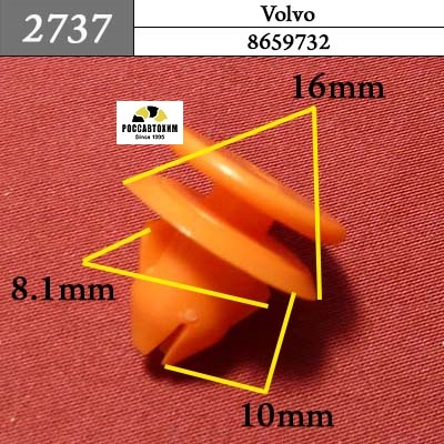 Автомобильный крепёж 2737 Автокрепеж для Volvo c оригинальным кодом 8659732 — используется на автомобилях Volvo для монтажа элементов автомобиля в следующих местах: отделка (различная), уплотнители, фиксаторы, шумоизол.Характеристики крепежа:Оригинальный номер: 8659732Марка и модель авто: , Volvo XC70