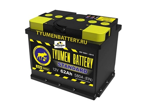 Аккумулятор Тюмень STANDARD 62 А/ч предназначен для большинства недорогих отечественных и импортных автомобилей со стандартной комплектацией и энергонасыщенностьюИзготавливаются АКБ по современной технологии и традиционной конструкции, соответствующим европейским нормам.Достоинства и преимуществаоптимальное соотношение высокого качества и низкой ценывысокая надежность при пуске двигателяминимальный саморазрядвысокая резервная емкостьустойчив к перепадам бортового напряжениядлительный срок эксплуатацииКонструкцияизготовлен с использованием технологии Ca/Ca (кальциевый аккумулятор)виброморозоустойчивый корпусположительные электроды увеличенной толщиныспециально устойчивый к коррозии свинцовый сплавэргономичная ручка для переноски защитные колпачки для клеммПриспособлен к российскому климатуСкидка за старый аккумулятор