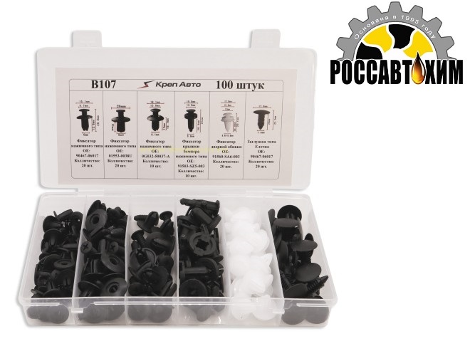 Автомобильный крепёж B107 Набор пластиковых клипс 100 шт. c оригинальным кодом B107 Универсальные