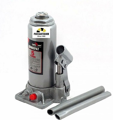 Домкрат гидравлический. Гидравлический бутылочный домкрат представляет собой устройство предназначенное для поднятия грузов. Гидравлические домкраты отличаются компактностью конструкции, простотой обслуживания и надежностью в эксплуатации, позволяя осуществлять плавный подъем груза и его точную остановку на заданной высоте при небольшом рабочем усилии, благодаря высокому передаточному отношению между площадями поперечного сечения цилиндра и плунжера насоса. В отличие от других грузоподъемных механизмов, домкраты располагаются при подъеме под грузом, исключая, таким образом, необходимость использования громозких вспомогательных сооружений. Домкраты данного типа могут использоваться в качестве рабочего элемента в более сложных устройствах, таких как прессы, трубогибы, подъемники и т. пХарактеристики:грузоподъемность, 5твысота подхвата, 216ммвысота подъема, 413ммплощадь опоры, 112х117мм.