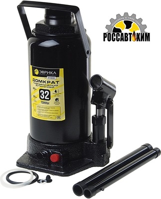 Гидравлический бутылочный домкрат ЭВРИКА с клапаном, 32 т, ремкомплект ER-80302 предназначен для подъема транспорта и других тяжелых грузов на высоту до 465 мм. Модель обладает сверхпрочным корпусом и надежным механизмом, что обеспечивает максимальную грузоподъемность в 32 тонны. Домкрат поставляется с удобной рукояткой-рычагом и ремкомплектом. Благодаря использованию морозостойкого масла агрегат разрешается эксплуатировать при температурах до -20ºС.