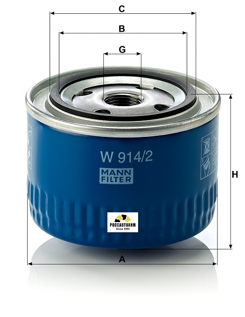 Масляный фильтр W 914/2В производстве.Об этом продукте —Масляные фильтры MANN-FILTER: максимальная эффективность фильтрации и оптимальная степень очистки защищают двигатель от износа, вызванного загрязнениями и остатками продуктов сгорания в масле. Фильтрующие материалы и высококачественные уплотнения, индивидуально адаптированные к конкретной области применения, обеспечивают оптимальную защиту в течение всего межсервисного интервала.A = 93 mm C = 71 mm B = 62 mm H = 69 mm J = 1.2 barАртикул W914/2 Бренд MANN Наименование Фильтр масляный W914/2 Статус Нормальный КритерииИсполнение фильтра Накручиваемый фильтрНомер рекомендуемого специального инструмента LS 9Внутренний диаметр 2 (мм) 62Наружный диаметр 2 [мм] 71Высота [мм] 69Размер резьбы 3/4-16 UNFНаружный диаметр [мм] 93Дополнительный артикул / дополнительная информация 2 с возвратным клапаномДавление открытия обгонного клапана [бар] 1,2ВГХВнешний диаметр 93 ммВнутренний диаметр 1 62 ммВнутренний диаметр 2 7