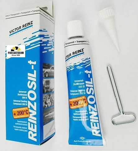 Victor Reinz Reinzosil-tЦвет прозрачный. Артикул 70-31453-00Reinzosil-t прозрачный герметикВысокоэластичный прозрачный силиконовый герметик без содержания растворителей, твердеющий при комнатной температуре и влажности воздуха, для герметизации, склеивания и нанесения покрытий. После застывания REINZOSIL-t практически не имеет запаха.СВОЙСТВАМатериалы REINZOSIL и REINZOSIL-t аналогичные по свойствам и применению, единственным отличием является диапазон рабочих температур. REINZOSIL-t может применяться при длительном воздействии температур от -50 °C до +180 °C.ПРИМЕНЕНИЕВозможно нанесение в уже смонтированных деталях. В этих случаях после очистки и удаления места уплотнения, как и в аналогичных применениях в строительстве, REINZOSIL-t наносится непосредственно на уплотнительный зазор.ИСПОЛЬЗОВАНИЕУдалить остатки герметиков и других материалов (масел, смазок итд.) средством RE-MOVE. Вытереть поверхности насухо. Нанести герметик с одной стороны вручную или с помощью пневма