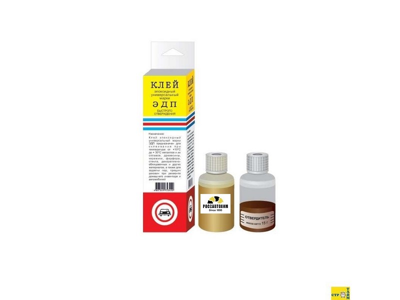 Cклеивание композиционных, металлических материалов и их сплавов, керамики и прочих материалов оперативный ремонт и пломбирование приборов и изделий заделка и выравнивание дефектов, усиление поверхностей.Применяется в случаях, когда необходим ремонтный состав, способный полностью отверждаться в течении нескольких часов. Может служить альтернативой «холодной сварке».Преимущества ЭДП Быстрого отверждения:обеспечивает необходимый уровень прочности клеевого соединения через 6 часов после начала отверждения при температуре 20±10°С уменьшает трудоемкость и увеличивает скорость процесса склеивания, обеспечивая возможность проведения следующих технологических операций, не дожидаясь полного завершения процесса склеивания.Состав одной потребительской упаковки 45 г. эпоксидного клея быстрого отверждения:1 полиэтиленовая бутылка с основой – эпоксидной смолой модифицированной 1 полиэтиленовая бутылка с отвердителем.Инструкция по применению клея быстрого отверждения:Подготовить поверхности, подлежащи