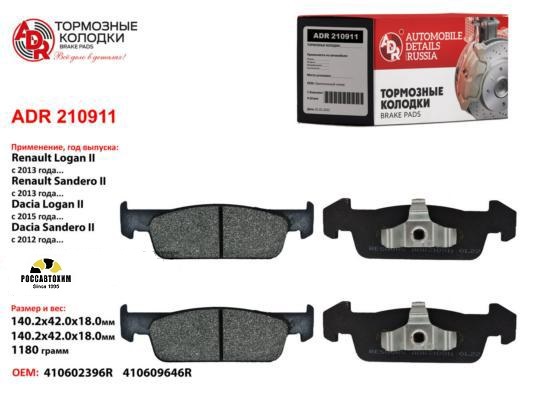 Колодки тормозные передние «LADA X-RAY» (8 клап.) (140 мм) «ADR» ADR210911