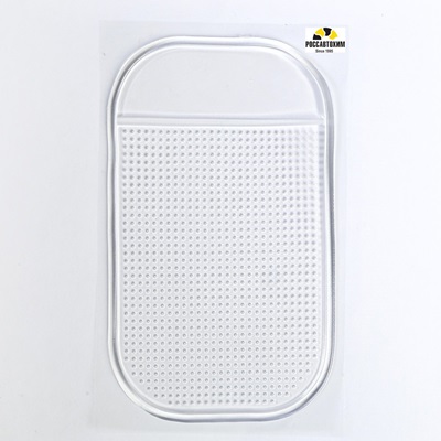 Противоскользящий коврик на приборную панель выполнен из легко моющегося и мягкого материала. Изделие плотно держится на любом покрытии приборной панели, а так же защищает её от повреждений. Аксессуар надёжно удерживает предметы при резких манёврах и поворотах.