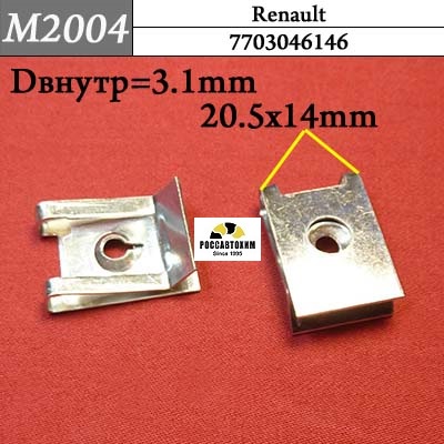 Автомобильный крепёж M2004 Скоба металлическая на Renault c оригинальным кодом 7703046146 используется на автомобилях Renault для монтажа элементов автомобиля в следующих местах: .Характеристики крепежа:Марки и модели: Renault Sandero (2012- ) / Renault Logan (2013-) / Renault Duster (2009- ) / Renault Scenic IV (2013-) / Renault Captur (2017- ) / Renault Megane IV (2015- )Место установки: Салон, Надколёсные дуги, Бампер, Приборная панель