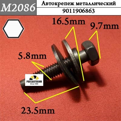 Автомобильный крепёж M2086 Металлический болт c оригинальным кодом 9011906863 -используется на автомобилях для монтажа элементов автомобиля в следующих местах: .Характеристики крепежа:Вид резьбы: Метрическая резьба (М6)Марки и модели: Toyota IQ (2009- ) / Toyota Verso S (2010-2014 ) / Toyota Yaris (2005-2011) / Toyota Yaris (2011-2014) / Toyota Yaris (1999-2005) / Toyota Prius (2009-2015) / Toyota Land Cruiser Prado / Toyota Land Cruiser Prado (1996-2002) / Toyota Land Cruiser Prado (2003-2009) / Toyota Land Cruiser Prado (2009- ) / Toyota IQ (2009- ) / Verso S (2010-2014 ) / IQ (2009- ) / Yaris (2005-2011) / Yaris (2011-2014) / Yaris (1999-2005) / Prius (2009-2011) / Prius (2011-2015) / Yaris (2005-2011) / Yaris (2011-2014) / Verso S (2010-2014 ) / Land Cruiser Prado (1996-2002) / Land Cruiser Prado (2003-2009) / Land Cruiser Prado (2009- ) / Land Cruiser Prado (1996-2002) / Land Cruiser Prado (2003-2009) / Land Cruiser Prado (2009- )Место установки: Моторный отсек Бампер, Багажник