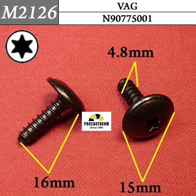 Автомобильный крепёж M2126 Саморез металлический на Audi, Seat, Skoda, Volkswagen c оригинальным кодом N90775001 — используется на автомобилях Audi, Seat, Skoda, Volkswagen для монтажа элементов автомобиля в следующих местах: защита (различная), капот, крылья .Характеристики крепежа:Марки и модели: Seat / Skoda / VW / Audi /