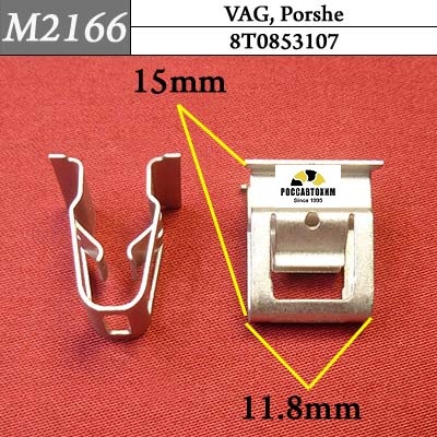 Автомобильный крепёж M2166 Скоба металлическая на Audi, Seat, Skoda, Volkswagen, Porshe c оригинальным кодом 8T0853107 — используется на автомобилях Audi, Seat, Skoda, Volkswagen для монтажа элементов автомобиля в следующих местах: двери, отделка (различная) .Характеристики крепежа:OEM:8T0853107. Марка: Audi. Модель: A3, A4, A5, A6, A7, A8, S5, S6, TT, R8, RS5, RS7. Место установки: Кузов. Элементы: УниверсальныеOEM:8T0853107. Марка: VW. Модель: Passat (2012 — 2019), Touareg (2013 — 2017), T5. Место установки: Кузов. Элементы: УниверсальныеOEM:8T0853107. Марка: Porsche. Модель: Разные. Место установки: Кузов. Элементы: Универсальные