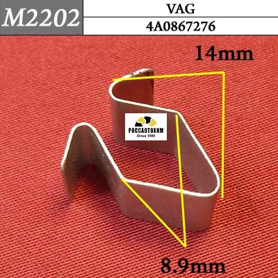 Автомобильный крепёж M2202 Скоба металлическая на Audi, Seat, Skoda, Volkswagen c оригинальным кодом 4A0867276 — используется на автомобилях Audi, Seat, Skoda, Volkswagen для монтажа элементов автомобиля в следующих местах: багажник, отделка (различная) .Характеристики крепежа:OEM: 4A0867276 Марка: Audi Модель: A1 Место установки: Кузов Элементы: Крепление обшивкиOEM: 4A0867276 Марка: Audi Модель: A2 Место установки: Кузов Элементы: Крепление обшивкиOEM: 4A0867276 Марка: Audi Модель: A3 Место установки: Кузов Элементы: Крепление обшивкиOEM: 4A0867276 Марка: Audi Модель: A4 allroad quattro Место установки: Кузов Элементы: Крепление обшивкиOEM: 4A0867276 Марка: Audi Модель: A4 Место установки: Кузов Элементы: Крепление обшивкиOEM: 4A0867276 Марка: Audi Модель: A5 Место установки: Кузов Элементы: Крепление обшивкиOEM: 4A0867276 Марка: Audi Модель: A8 Место установки: Кузов Элементы: Крепление обшивкиOEM: 4A0867276 Марка: Audi Модель: Q2 Место установки: Кузов Элементы: Крепление обшивкиOE