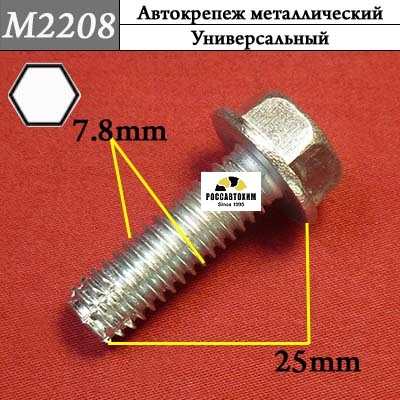 Автомобильный крепёж M2208 Болт металлический универсальный c оригинальным кодом M2208 — используется на автомобилях для монтажа элементов автомобиля в следующих местах: универсальный.Характеристики крепежа:Вид резьбы: Дюймовая резьба