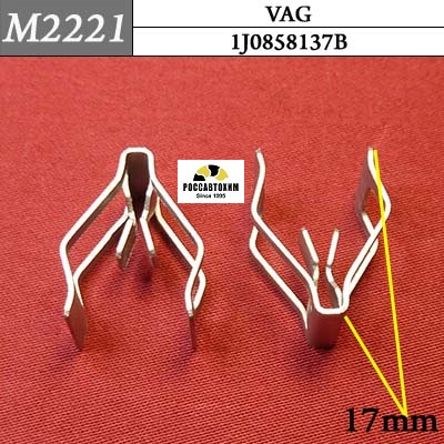 Автомобильный крепёж M2221 Скоба металлическая на Audi, Seat, Skoda, Volkswagen c оригинальным кодом 1J0858137B — используется на автомобилях Audi, Seat, Skoda, Volkswagen для монтажа элементов автомобиля в следующих местах: отделка (различная), панель приборов Характеристики крепежа:OEM:1J0858137B. Марка: Audi. Модель: A3 (2003 — 2012), A4 B6 (2000 — 2004), A4 B7 (2004 — 2008), A4 B8 (2007 — 2017), A6 C6 (2004 — 2011), A8 D3 (2003 — 2009), Q5 (2008 — 2017), Q7 (2005 — 2017).Место установки: Кузов. Элементы: УниверсальныеOEM:1J0858137B. Марка: Seat. Модель: Alhambra (2000 — 2010), Alhambra (1996 — 2000), AlteaCordoba (2002 — 2008), Exeo (2009 — 2017), Ibiza (2002 — 2008), Leon (2005 — 2012), Toledo (2004 — 2009).Место установки: Кузов. Элементы: УниверсальныеOEM:1J0858137B. Марка: Skoda. Модель: Octavia, Fabia (1999 — 2007), Fabia (2006 — 2017), Octavia A5 (2004 — 2008), Roomster (2006 — 2015), Superb (2008 — 2012), Yeti (2010 — 2012).Место установки: Кузов. Элементы: Универсальные