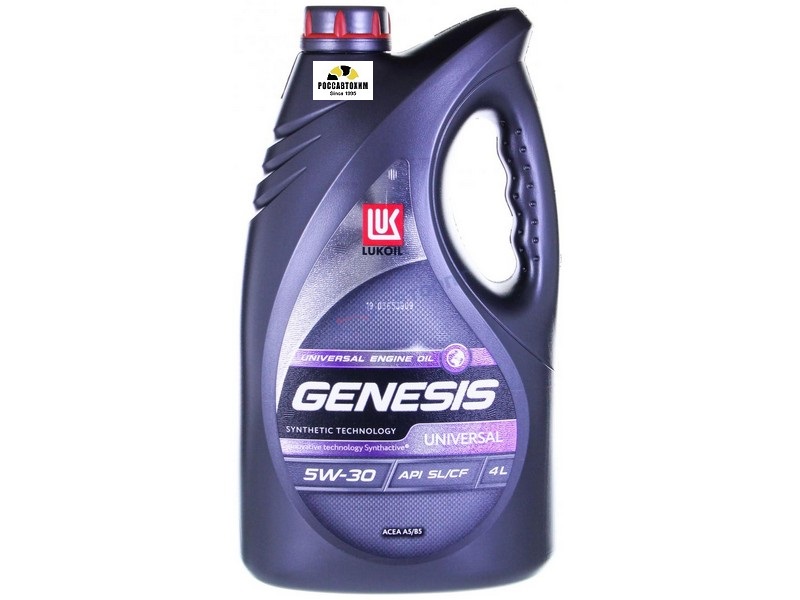 LUKOIL GENESIS UNIVERSAL 5W-30 – моторное масло на основе синтетических технологий для бензиновых и дизельных двигателей пост гарантийных автомобилей. Производится с применением передовой технологии Synthactive®. LUKOIL GENESIS UNIVERSAL 5W-30 рекомендовано к всесезонному применению в бензиновых и дизельных двигателях (без фильтров сажевых частиц — DPF) автомобилей Ford, бензиновых двигателях Renault, а также в бензиновых и дизельных двигателях KIA, Hyundai, Toyota, Nissan, Honda, Mitsubishi и других автопроизводителей, требующих использование масел уровня свойств API SL и/или A5/B5.Спецификации:API SL/CFFord WSS-M2C-913-A/B/C/DACEA A1/B1, A5/B5Renault RN 0700Преимущества:СТОЙКОСТЬ К ОКИСЛЕНИЮОбладает высокой стойкостью к окислению и нитрованию за счёт повышенного щелочного числаПРЕВОСХОДНЫЕ НИЗКОТЕМПЕРАТУРНЫЕ СВОЙСТВАОбладает отличной прокачиваемостью при низких температурахЭКОНОМИЯ ТОПЛИВАПовышенная топливная экономичность за счет за счет низкого показателя HTHS (High Temperatu