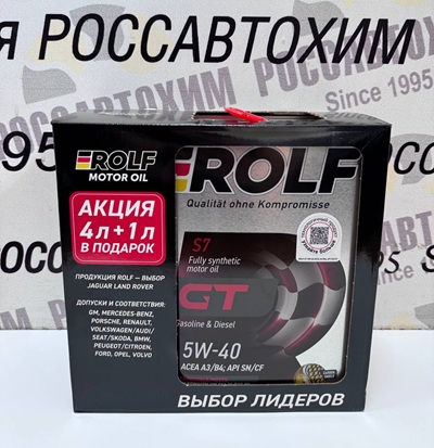 Масло моторное Rolf GT 5W40 SN/CF синт. 4л АКЦИЯ 4л +1л беспл. Арт. пр-ля: 322403