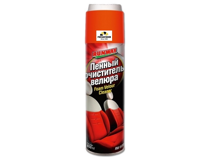 Предназначен для удаления разнообразных загрязнений и пятен с изделий из велюра. Быстро удаляет даже глубоко въевшуюся грязь. Удаляет неприятные запахи и освежает воздух в салоне автомобиля. Придает материалу антистатические свойства. Очиститель RUNWAY удаляет большинство свежих пятен от чая, кофе, молока, соков, крови, губной помады, машинного масла и т.д.Применение:Хорошо встряхните баллон перед использованием. Распылите состав с расстояния 20-30 см на обрабатываемую поверхность и равномерно распределите его по поверхности чистой тряпкой или губкой. Выждите несколько минут, дав составу впитаться. Отполируйте поверхность до появления блеска чистой, мягкой тряпкой.