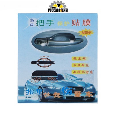 Защитная пленка устанавливается в углубления под внешние дверные ручки. Поверхность двери должна быть чистой, обезжиренной. Перед установкой поверхность нужно опрыскать водой, затем при установке выдавливать воду и пузыри из под самой защитной пленки. Защитная пленка под дверные ручки предотвращает появление повреждений и царапин на лакокрасочном покрытии от ногтей пальцев, колец на пальцах и прочих предметов при открывании двери.