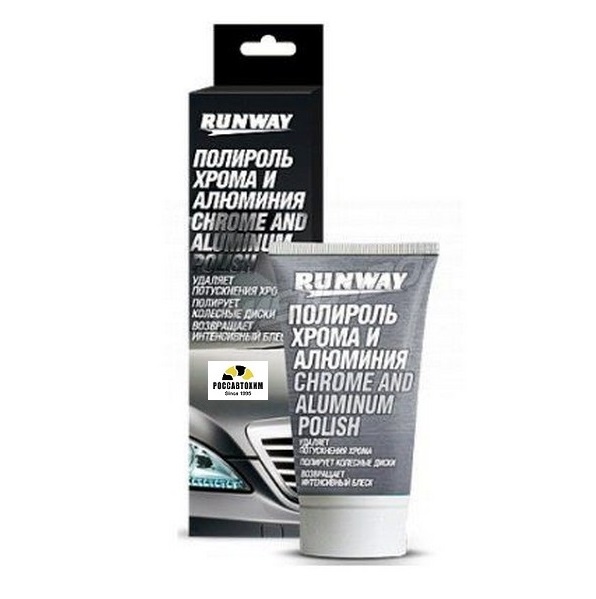 Полироль хрома и алюминия RUNWAY быстро и эффективно устраняет потускнения хромированных деталей автомобиля и алюминиевых колесных дисков автомобиля, возвращая им первоначальный блеск. Быстро очищает все металлические поверхности от окислов, ржавчины и сложных загрязнений не повреждая их. После применения оставляет интенсивный блеск. Не содержит силиконов. Может применяться в быту для ухода за изделиями из серебра, золота, хрома, а также магниевых и алюминиевых сплавов.