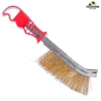 Металлическая щетка с пластиковой ручкой с проволокой оптимальной жесткости. За счет этого увеличивается легкость и качество очистки.ХарактеристикиТип товара щеткаМатериал латуньРазмер упаковки 25x6x2 смРекомендации Предназначена для обработки металлических поверхностей (снятие старой краски, ржавчины), а так же зачистки металла. Оснащена эргономичной ручкой.Вес в упаковке,кг 0,12