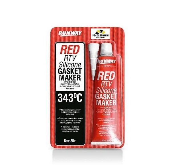 Силиконовый высокотемпературный герметик RUNWAY RW8500 красный, 85 г 54977 предназначен для быстрого ремонта узлов и агрегатов, работающих в условиях повышенных температур.Продукт используют для клапанной крышки, помпы, термостата, дверей и крышки багажника, трубопроводов, глушителя. Состав заполняет мельчайшие трещины, обладает хорошей адгезией, эластичностью и упругостью.