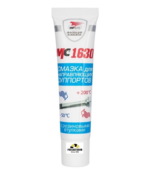 Работает даже при 10 кратном загрязнении цементомНе коксуется даже при десятикратном добавлении цемента за счет PTFE в составе. Подходит для направляющих в том числе с резиновыми втулкамиПыльники направляющих подвергаются внешним воздействиям контактируют с реагентами, загрязнениями, водой. В результате чего разрушаются, изменяют форму, эластичность и уже не могут обеспечивать 100% защиту втулок и направляющих от ржавчины, перекоса колодок и заедания.ПреимуществаУстойчива к вымыванию водойНе коксуетсяНе вызывает деформации и разрушения резиновых пыльниковЗащищает направляющие от коррозииТермо- и морозостойкаНовая смазка МС 1630 отлично подходит для смазывания направляющих суппорта, в том числе с резиновыми втулками. Температурные и вязкостные характеристики позволяют смазке работать в экстремальных условиях – от -50⁰С до +200⁰С. МС 1630 защищает от залипания, закоксовывания и присыхания направляющих, обеспечивая равномерный износ колодок и безопасное торможение.Не оказывает воздействия на резиновые втулки направляющих, продлевая срок их службы.