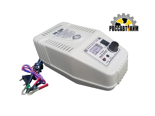 Зарядное устройство нашего производства ЗУ-130М предназначено для заряда аккумулятора автомобиля емкостью от 50 до 180 А.ч.Данная модель зарядного устройства имеет плавную регулировку тока заряда, а максимальная степень заряженности АКБ повышена до 90-95% номинальной ёмкости.Отличительные особенности:— номинальное выходное постоянное напряжение, при заряде током 10А (14 ± 1,2)В.— номинальный постоянный выходной ток (ток заряда) (10 ± 1,0)А.- номинальная потребляемая мощность ЗУ-130М при токе заряда 10А, не более 140 Вт.— масса ЗУ-130М в комплекте с соединительными проводами, не более — 2,5кг— габаритные размеры 215х130х170 мм.